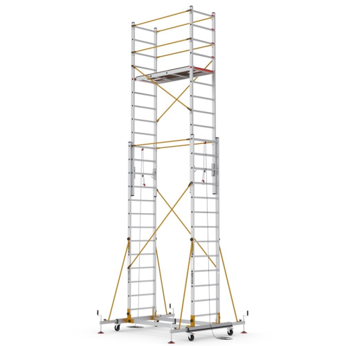 Profesionálne výsuvné lešenie s max. pracovnou výškou 7,03 m. Lešenie je ovládané lanami, na ktorých obsluhu sú potrebné dve osoby. Hliníkové lešenie je vybavené kladkami, kolesami a nastaviteľnými stabilizačnými prvkami. Nosnosť je 200 kg/m2.