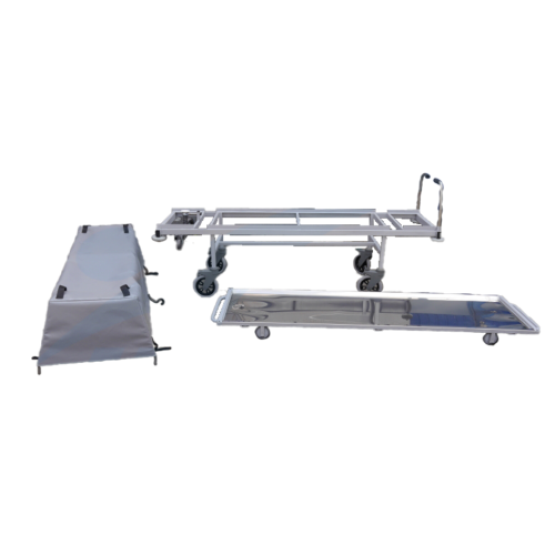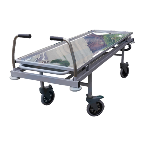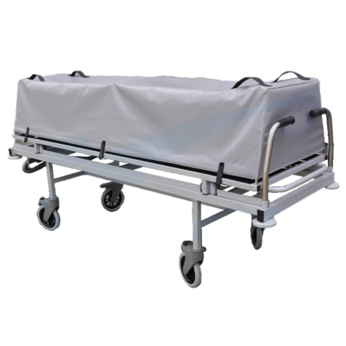 Vozík s kovovou konštrukciou na presun zosnulých je určený na prevoz, umývanie a krátkodobé uskladnenie tiel. Je určený pre použitie v zdravotníckych zariadeniach, hospicoch, márniciach, špecializovaných zariadeniach a pod. Jeho obsluha je veľmi jednoduchá a pevná kovová konštrukcia zaisťuje dlhodobé používanie. Vozík na prepravu zosnulých je určený na prepravu v uzavretých priestoroch (vnútri budovy). Štandardná výbava: podvozok, odnímateľná ložná plocha a PVC kryt. Ložná plocha je z nehrdzavejúcej ocele. Umiestnená je vo výške 645 mm. Dĺžka a šírka ložnej plochy sú 1950 x 600 mm. Nosnosť produktu je 180 kg.