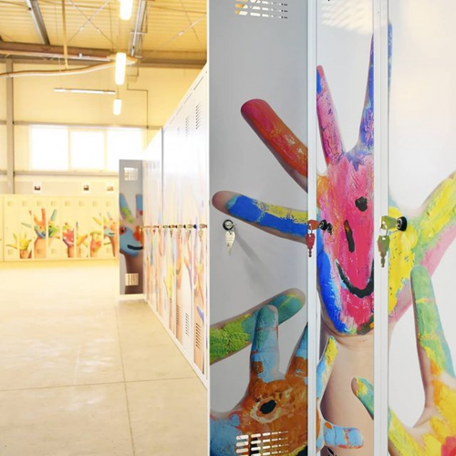 Kovový šatník s potlačou šírky 900 mm. Potlač je rezistentná voči UVA a UVB žiareniu a vyznačuje sa zvýšenou odolnosťou proti mechanickému poškodeniu, napr. poškriabaniu. Nami dodávaná špeciálna UV potlač je neporovnateľne odolnejšia ako fóliový polep a štyrikrát odolnejšia ako štandardná potlač. Farebná úprava povrchu je trvácna a vyznačuje sa veľmi živými farbami. Šatňové skrine s potlačou na dverách sú vhodné pre školy a organizácie, ktoré chcú neobyčajným spôsob zdieľať svoje posolstvo alebo len jednoducho oživiť svoje priestory, prípadne upútať jedinečným firemným vizuálom.
