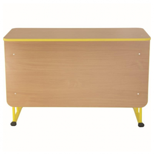 Katedra pre vyučujúceho s konštrukciou z plochooválnych profilov. Profil rámu má prierez 50 x 30 mm. Hrúbka pracovnej dosky je 18 mm, za príplatok môže byť aj hrubšia. Rohy katedry sú v základnom vyhotovení pravouhlé, za príplatok možnosť zaoblených. Farba 2 mm hrubej ABS hrany môže byť vo farbe konštrukcie alebo dezéne pracovnej dosky. Dostupné farby konštrukcií nájdete v obrázkoch k produktu. Stôl je vybavený aj 1 uzamykateľnou zásuvkou. Koncovky nôh sú plastové, proti poškriabaniu podlahy.