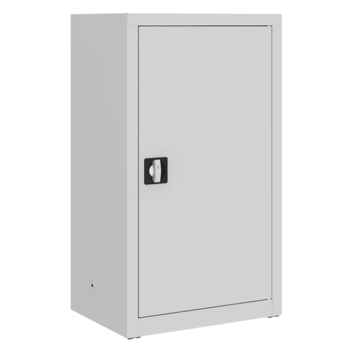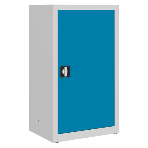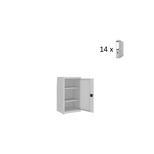 Uzamykateľná policová skriňa s otočnými dverami, 1040 x 600 x 435 mm. Dodávaná s 2 kľúčmi a 2 policami, ktoré sú prestaviteľné po 25 mm. Skriňa je zváraná, nie je nutná jej montáž, čo jej dodáva pevnosť a stabilitu. V základnej výbave sú aj nastaviteľné nožičky, ktoré umožnia nastavenie skrine do vodorovnej polohy.