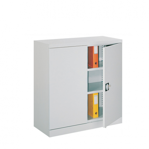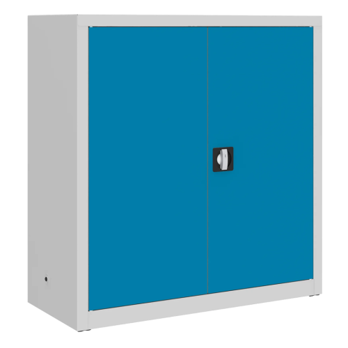 Uzamykateľná policová skriňa s otočnými dverami, 1040 x 1000 x 435 mm. Dodávaná s 2 kľúčmi a 2 policami, ktoré sú prestaviteľné po 25 mm. Skriňa je zváraná, nie je nutná jej montáž, čo jej dodáva pevnosť a stabilitu. V základnej výbave sú aj nastaviteľné nožičky, ktoré umožnia nastavenie skrine do vodorovnej polohy.