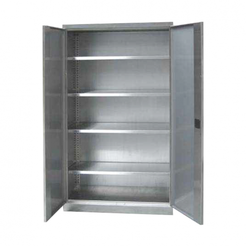 Uzamykateľná policová skriňa vyrobená z nehrdzavejúcej ocele, 1990 x 1000 x 435 mm. Dodávaná s 2 kľúčmi a 4 policami, ktoré sú prestaviteľné po 25 mm.