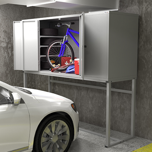 Praktická úschovná skriňa do garáže, ktorá dokáže ušetriť miesto vďaka možnosti parkovania pod skriňou. Kapacita až 5000 litrov a nosnosť políc 80 kg zabezpečia dostatok miesta pre vaše veci. Skriňa je uzamykateľná, dodáva sa s 2 kľúčmi. Skriňu je možné ukotviť o podlahu alebo stenu. Dodáva sa v demontovanom stave (skriňa + podstavec), možnosť dodať aj s montážou.