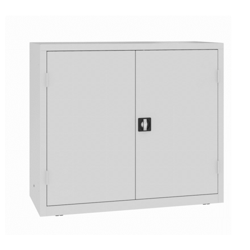 Kovová skriňa vybavená policami a zásuvkami. Detailný popis