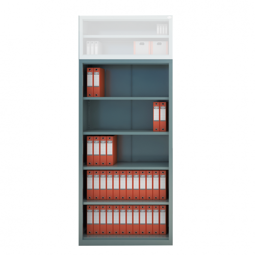 Vysoký kovový regál šírky 800 mm na prehľadnú archiváciu zakladačov. Výhodou výrobku je robustná konštrukcia pri zachovaní jednoduchého prístupu k dokumentom. Police sú nastaviteľné po 25 mm.