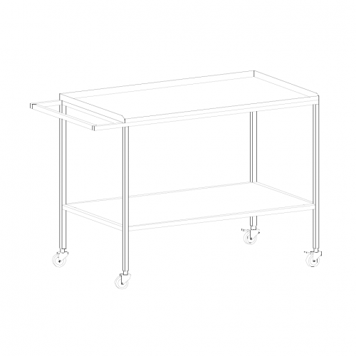 Vozík na antistatických kolieskach v prevedení antikor, 2 kolieska brzdené. Spodná polica nemá ohraničenie ako horná. Určené na transport vecí.