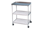 Konštrukcia vozíka je z oceľových profilov. Horný povrch je z nehrdzavejúcej ocele so zábranami na okrajoch a police sú farbené. Vozík má otočné plastové kolesá, ktoré sú pogumované, priemer 50 mm. Výrobok je vhodný na skladovanie a transport nástrojov používaných v zdravotníctve. Za príplatok možné objednať aj s inou ako bielou farbou konštrukcie.