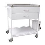 Konštrukcia vozíka je z oceľových profilov. Horná polica je tvorená povrchom z nehrdzavejúcej ocele so zábranami na okrajoch. Ostatné police sú farbené - oceľové. Vybavené 2 zásuvkami (výška zásuviek je 2 x 100 mm). Vozík má otočné plastové kolesá, ktoré sú pogumované, priemer 75 mm, 2 s brzdou. Stolík je tiež vybavený madlom a nádobou na odpad. Výrobok je vhodný na skladovanie a transport nástrojov používaných v zdravotníctve. Za príplatok možné objednať aj s inou ako bielou farbou konštrukcie.