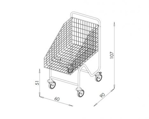 Kovový vozík prispôsobený na prepravu prádla do práčky. Konštrukcia je kovová, ošetrená práškovou farbou, odolná voči vode. Kolesá sú otočné, priemeru 125 mm, z toho 2 vybavené brzdou. Celková nosnosť výrobku je 200 kg.