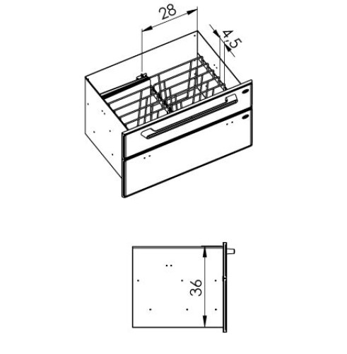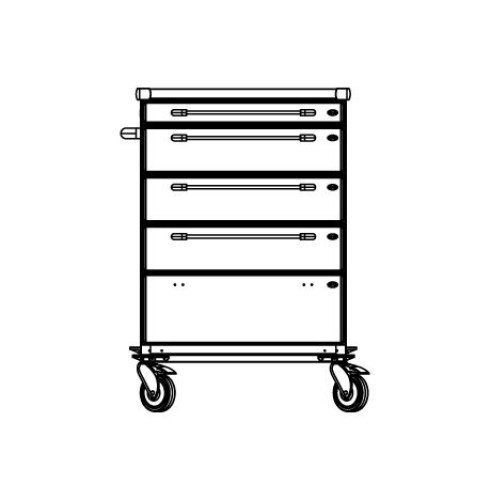 Konštrukcia vozíka môže byť oceľová, ošetrená šedou antimikrobiálnou farbou alebo v nehrdzavejúcom AISI304 prevedení. Vozík má antivibračnú výstuhu. Pracovná plocha vozíka z nehrdzavejúcej ocele AISI304 s 12 mm prelisom, ochrannými rohmi a nosnosťou 20 kg. Čelá zásuviek sú z kompaktného plastu (ABS), farba je voliteľná zo vzorkovníka. Zásuvky môžu byť klasické alebo určené na skladovanie MS košov. Zásuvky sú vybavené guličkovým plnovýsuvom, s doťahovaním a dotlmením. Nosnosť zásuviek je 20 kg. Zásuvky sú centrálne uzamykateľné. Produkt je vybavený: 1 x zásuvka veľkosti S, 2 x zásuvka veľkosti M, 1 x zásuvka veľkosti XL so zakladačom na dokumenty. Zakladač má kapacitu 16 zložiek A4, oddeľovacie priečky sú vyberateľné, nosnosť zásuvky je 40 kg. Vozík je vybavený aj oceľovým madlom, AISI304. Kolesá vozíka sú plastové, s plastovými nárazníkmi. Priemer kolies je 125 mm, z toho 2 s brzdou. Celková nosnosť výrobku je 150 kg.