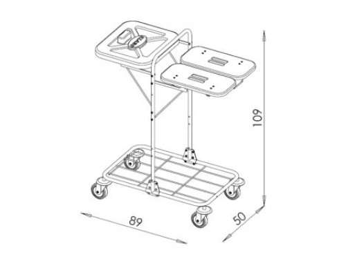 Vozík s kovovou chrómovou konštrukciou. Veká sú plastové a otvárajú sa ručne. Dostupné farby plastov: červená, modrá, zelená, žltá. Držiak vaku je sklopný: 1 x 120 l, 2 x 80 l, nosnosť je 30 kg. Kolesá sú otočné s plastovými nárazníkmi, priemer 100 mm. Celková nosnosť výrobku je 90 kg.