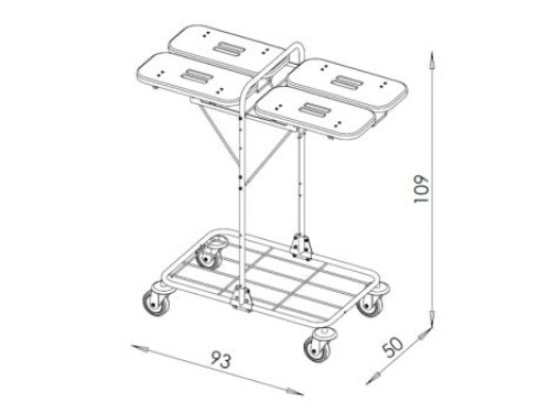 Vozík s kovovou chrómovou konštrukciou. Veká sú plastové a otvárajú sa ručne. Dostupné farby plastov: červená, modrá, zelená, žltá. Držiak vaku je sklopný: 4 x 80 l, nosnosť je 30 kg. Kolesá sú otočné s plastovými nárazníkmi, priemer 100 mm. Celková nosnosť výrobku je 60 kg.