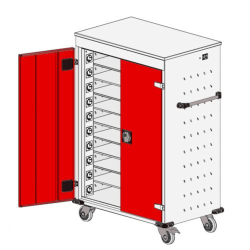 Vozík na úschovu, nabíjanie a prepravu elektronických zariadení. Kapacita: 20 zariadení.