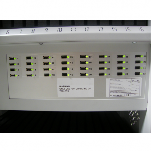 Vozík na úschovu, nabíjanie a prepravu elektronických zariadení. Kapacita: 1 počítač a 32 tabletov - smartfónov.