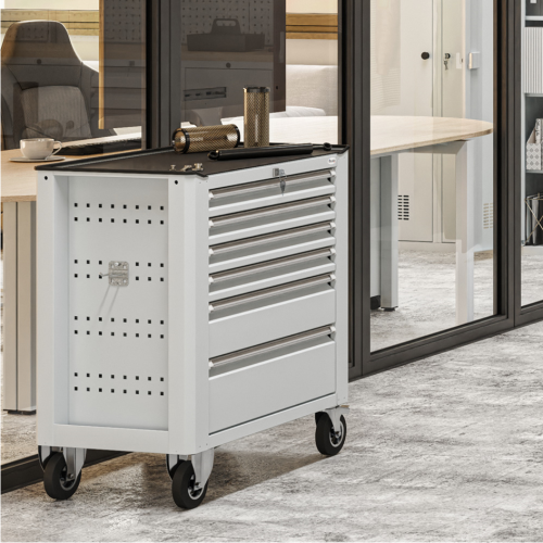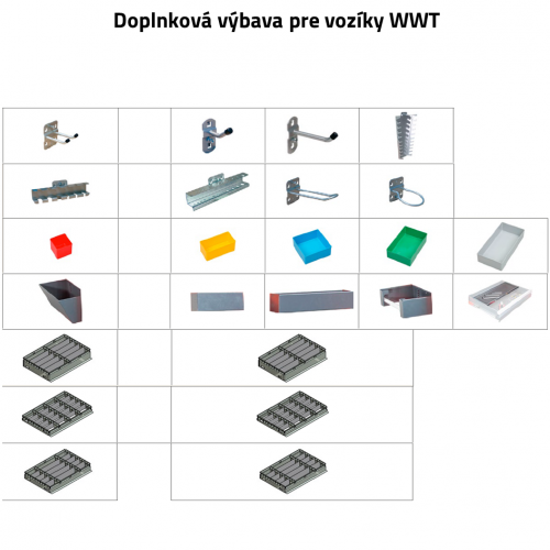 Kovový dielenský vozík na kolieskach, 2 brzdené. Je možné objednať široký sortiment doplnkov k vozíku.