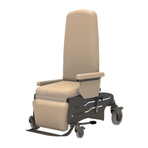 Rehabilitačné, ošetrovateľské a geriatrické kreslo vhodné pre seniorov – so 4 otočnými kolesami a polohovateľným sedadlom.