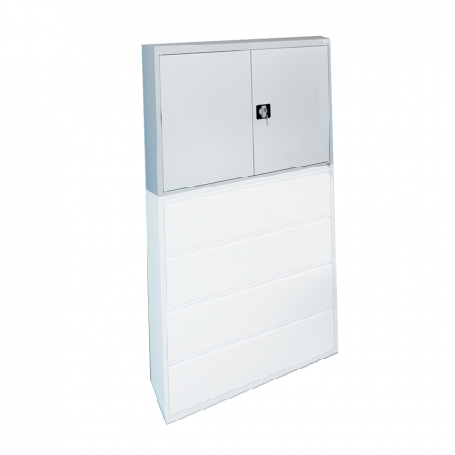 Skriňa 810 x 600 x 435 mm, dodávaná s 2 kľúčmi a 1 policou, ktorá je prestaviteľná po 25 mm. Možnosť vytvoriť 2 rady zakladačov. Skriňa je zváraná, nie je nutná jej montáž, čo jej dodáva pevnosť a stabilitu.