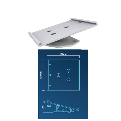 Hliníkový stojan na uchytenie prístroja, so sklopným držiakom. Držiak je nastaviteľný od 0° do +15°. Farba stojanu je biela, za príplatok je možné objednať aj v iných farbách. Kolieska priemeru 100 mm sú polyamidové s polyuretánovým behúňom, 2 s brzdou. Nosnosť výrobku je 20 kg. Výrobok spĺňa normu IEC60601-1:2012. Vyhovuje smernici RoHS.